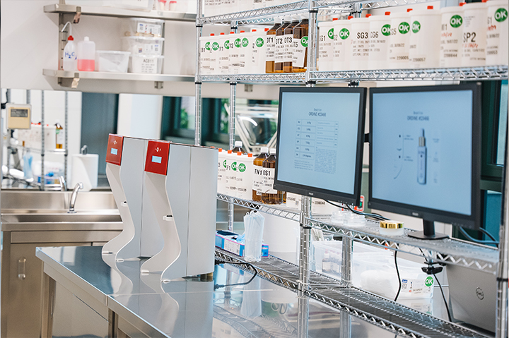 Utilizziamo i macchinari più innovativi e di ultima generazione: La nostra bilancia misura la quantità dei tuoi ingredienti con una precisione fino a tre cifre decimali, il nostro miscelatore è in grado di mescolare alla perfezione tutti gli ingredienti della tua formula e la nostra macchina laser, l'ultima arrivata in casa, ci permette di dare un nome al prodotto: il tuo.
